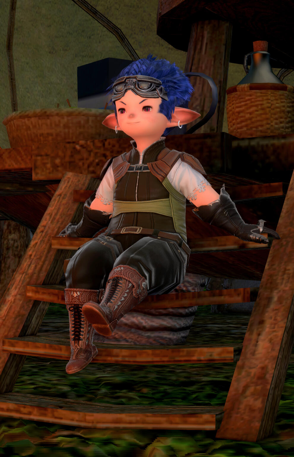 Limsa LominsaA Duskwight who was once from a family of Min-Tuy farmers who had a desire for less cavernous life. Taking up an axe that had once been used for less violent ventures, he hopped a ferry to the stormy shores of Limsa Lominsa. He joined the Marauders guild with the dreams of being a pirate and sail against the threats of Eorzea.Within the guild is where he made fast friends with the Au Ra Tansui. He made his fellow marauder his sparring mate and partner in any misadventures that Rulex decided to drag them on, be it hunting aurochs outside of Costa Del Sol to stealing smaller ships from pirates who had not been brought to tow under the admiral. It was also here that they began a partnership with the arcanist J’Talhdi and pushed another Au Ra, Suki, into joining. With his comrades in arms, Rulex offense dreamed of having his own crew with them by his side.Such dreams were pushed aside when they came under the sight of the Scion Y'shtola and drawn into a plot against the Admiral by the Ascians. After putting down the threats the four of them shared a vision of a crystal. With this gift they turned to helping out the city states of Eorzea along with others that had shared a similar vision.