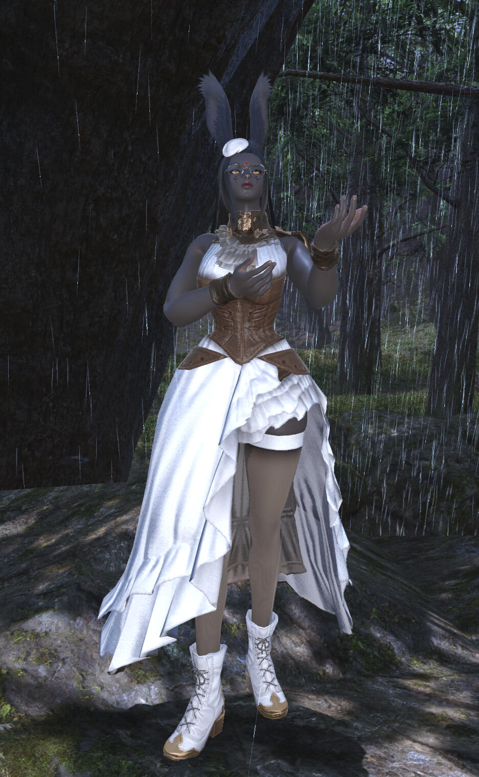 DomaA Veena Viera who once knew nothing of war and suffering, Valentyne had a very idealistic childhood amongst the forests and mountains of Skatay Range. She often longed to explore those boundaries, often hanging off the hands and hips of her sisters and mother when traders from Dalmasca and other neighboring areas to swap for the tribe’s kills. This curiosity led to her when she was old enough to leave with one of these parties to head into the heartland of man.She spent years as a hunter, learning from the hunting guilds and their ilk, discarding her bow for the more deadly firearms that were slowly being adopted as influences from their neighbors of Ilsabard and Doma. As she grew, so did her reputation as statuesque beauty and skilled opponent. She feared no beast, nor anyone else who would consider trifling with her. With this came dreams, and with the dreams, her ability to understand the world around her improved. She needed no study to understand the foreign traders, nor did she lose her kinds gift of speaking with the Green as many who left the woods did.Much like many other things, this romantic dream came to an end. Garlmald came with its army and weapons, and those who did not die in battle were treated as a little more than a beast tribe. Those Viera who had left their forest home were captured, and if not taken as a slave or play toy, sold to the highest bidder. It was here that Valentyne found herself, barely a teenager by her people’s standards, being traded to the brothels of Doma.Here, she was seen as little more than an exotic animal. She was pampered, spoiled by clients who wanted a taste of the race who rumors only spoke of. A gilded cage though was still very much a cage, and she chafed at it. She wanted nothing more to taste the wilds again, to be free and hunt. The chance would come though at the hands of chance. A Doman client had managed to claw his way through the ranks of their oppressors, now using his new found rank and power to take everything he wanted. He purchased Valentyne for a King's ransom, having her shipped to a mansion he had ‘acquired’ in the power struggle.Much like before he lavished Valentyne with gifts, playing at her being his ‘wife’. Now though without the eyes and ears of the brothel owners to stay his hand, he heaped whatever abuse that trickled down on to her. Fear of reprisal drove her to bow to his every wish, even as the desire for freedom grew. When his moods were fair, she entertained him as best she could with both body and the stories of her time as a hunter.He took to these stories the most, liking the idea of this trophy he not only show off in his home but also amongst the nobility who had come to hunt yanxian tigers. He soon began to outfit her with gear, selling her as a guide for those hunts. Valentyne was grateful for these brief outings, often lingering after the job was completed. It was here she caught the eye of a Garlean native officer, who took to calling on her for his visits to Doma. Much like suitors before he heaped gifts on her away from the eyes of her master, arming her with the best guns money could buy and a tiger cub he had captured to amuse her.This would end though, as her master found out about the officer, and in his rage threatened the cub that was Valentyne’s only source of comfort. In her blind fury, she shot her master, leaving him for dead. Gather what she could, she fled, following some unknown instinct to the west and Ala Mhigo. Here she hid amongst the refugees fleeing the Garleans until she made her way to Ul’dah. She began playing both her trades, leading syndicate members into the Black Shroud to hunt and entertaining them once the day was done back in their homes.It was here, that she survived the Calamity, and it was here where she would gain contact with the Scions of the Seventh Dawn through their man in the city. Through him, she would join with others who had the same gift and journey to face down an evil that threatened more than just Eorzea.