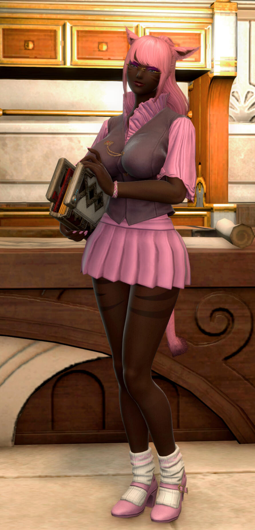 SharlyanThe daughter of a F tribe Nunh and a sailor, Mana is a lifelong native to the docks and allies of Limsa. Inheriting her mother’s thirst for something other than the drudgery of Sun Seeker culture when she came of age, she struck out across La Noscea finding odd jobs amongst farmers and merchants as they traveled to and from the island. It was here that she developed a love of numbers and of stories, willing to listen to even the most mundane of events if it meant a glimpse into someone else’s life.When the calamity struck, changing the landscape of her home, she returned to Limsa. Mana employee and training within the embrace of the Arcanist guild as an accountant, keeping track of taxes and fares that ships of both illegal and legally items entering the city may occur. This gave her even more tales to listen to, as she soon made fast friends with a few of the captains and crew. She soon started reading stories for a few gil off the fees here and there, as well as recording them in her tome she had received as a member of the guild.As rumors spread about the return of the Warriors of Light, she struck out again bidding her long time home farewell. She had new stories to record, and her curiosity of what the Scions of the Seventh Dawn needed to be sated.