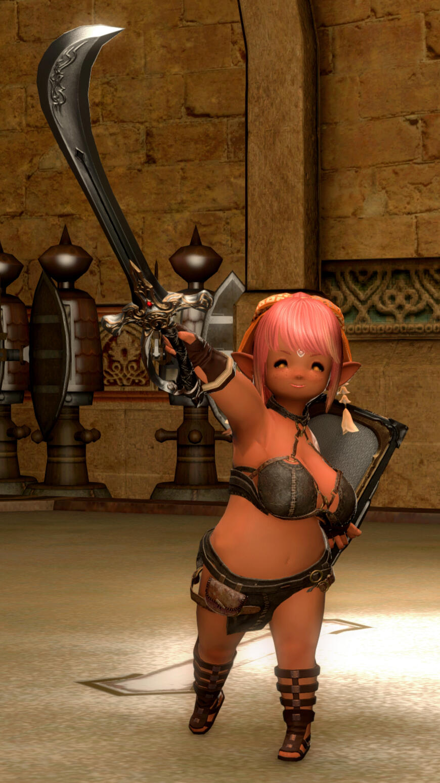 UldahThe would be heir of a South Seas merchant family who immigrated to Ul'dah who turned to the thrills of the Gladiatorial ring. Bibina or Bibi to her friends, quickly took the ring by storm as a popular heel. Her persona was one of rough and selfish wild child that was far from her actually personality, she often donated any pay she got to those who needed it.This generosity never faded as she was cut off money wise from her family. Without the family allowance to support herself out side of matches, she turned towards the adventurers guild. Here is where she became fast friends with others who worked within both profession as well as other guild members who were dipping their toes into the free lance life style.As the drums of war began to beat in Eorzea, a star shower burned bright over Ul'dah. Here is where Bibi awakened to the Echo, hearing the voice of the mother Crystal for the first time. Joining others who had the same gift and experienced the same event, she answered the call to defend Ezorea and the rest of the world against meteor. She threw herself against the Garlamald invaders with her Dawnguard companions until there was a flash of light that consumed them.When she came to, the battle had been over for hours, and in its wake was a devastated and healers were starting to gather the injured, dead and dying. Shocked, but not put off she offered what help she could before returning to Ul'dah. Not knowing what happened to her friends, she put her effort for the next five years to return her home to its former glory as well as returning to the ring. It was here as time went on she was reunited with some her former friends, perhaps just in the nick of time as Garlmald's threat and the threat of the Beast Tribe's primals returned.