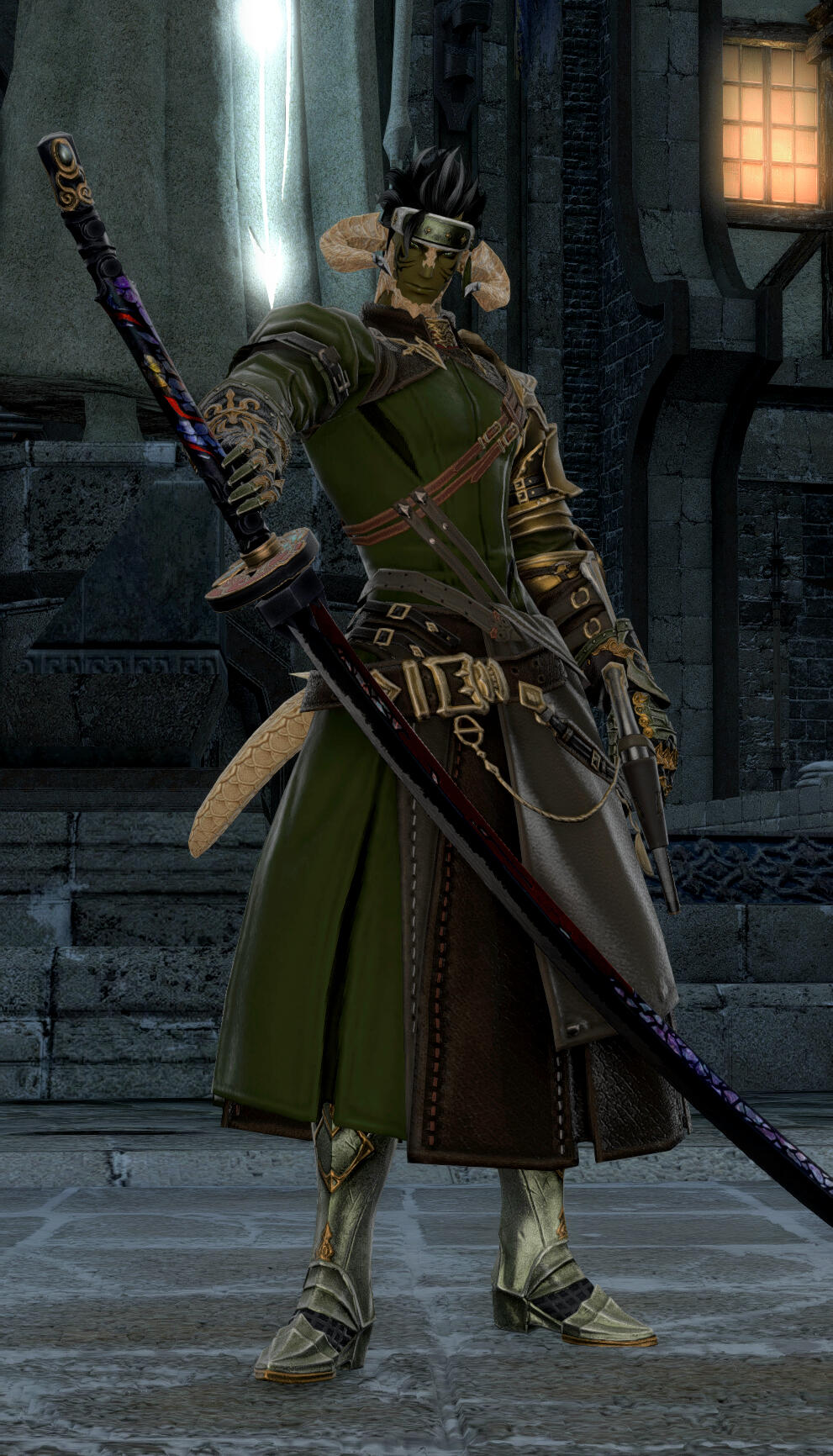 IshgardBorn to Doman refugees as their homeland was razed and raised by the Ishgardian knight who found the dying caravan and the female Roegadyn Samurai who had been assisting the caravan as they tried to make it through the harsh mountains that protected Coerthas from the rest of the world, Raiden and his four adopted sibling have always been an oddity. The Church viewed the siblings as heretics, something that should be shunned at best while at worst something that should have been left in the mountains for the bear and wolves.His adopted father though acted as a shield for the young Au Ri as they grew, encouraging them to take up lance and armor as he had before. It was difficult the old whispers of heresy still dogging them both as Raijin continued to grow and his features seemed to become more like their draconian enemy. The whispers soon escalated to action as an unknown vigilante set fire to their home. While both escaped unharmed, it was enough to embitter them both to the walls of the Holy City and they traveled south into the welcoming arms of the Gridanians.The knight found comrades within the Wood Wailers and the Lancer’s Guild. Raiden and his siblings though once again found themselves a subject of whispers and curiosity, and while not unkind as they were before, it still made them all acutely aware they did not belong in Eorzea. This twisted into anger at first, resentment for something he felt was stolen from him, but it soon turned into motivation. Even if he was an outsider he could defend Gridania against anything the empire could throw at them.This culminated in the Calamity, and he stood beside his father, comrades and fellow lancers as the worst the world had ever seen shattered everything they had known. While Raiden presumed his father and siblings was some of the many dead from Bahumat’s rampage, Raijin found himself thrown forward in time. Alone, he returned to Gridania, hoping to make some kind of sense of what had happened.
