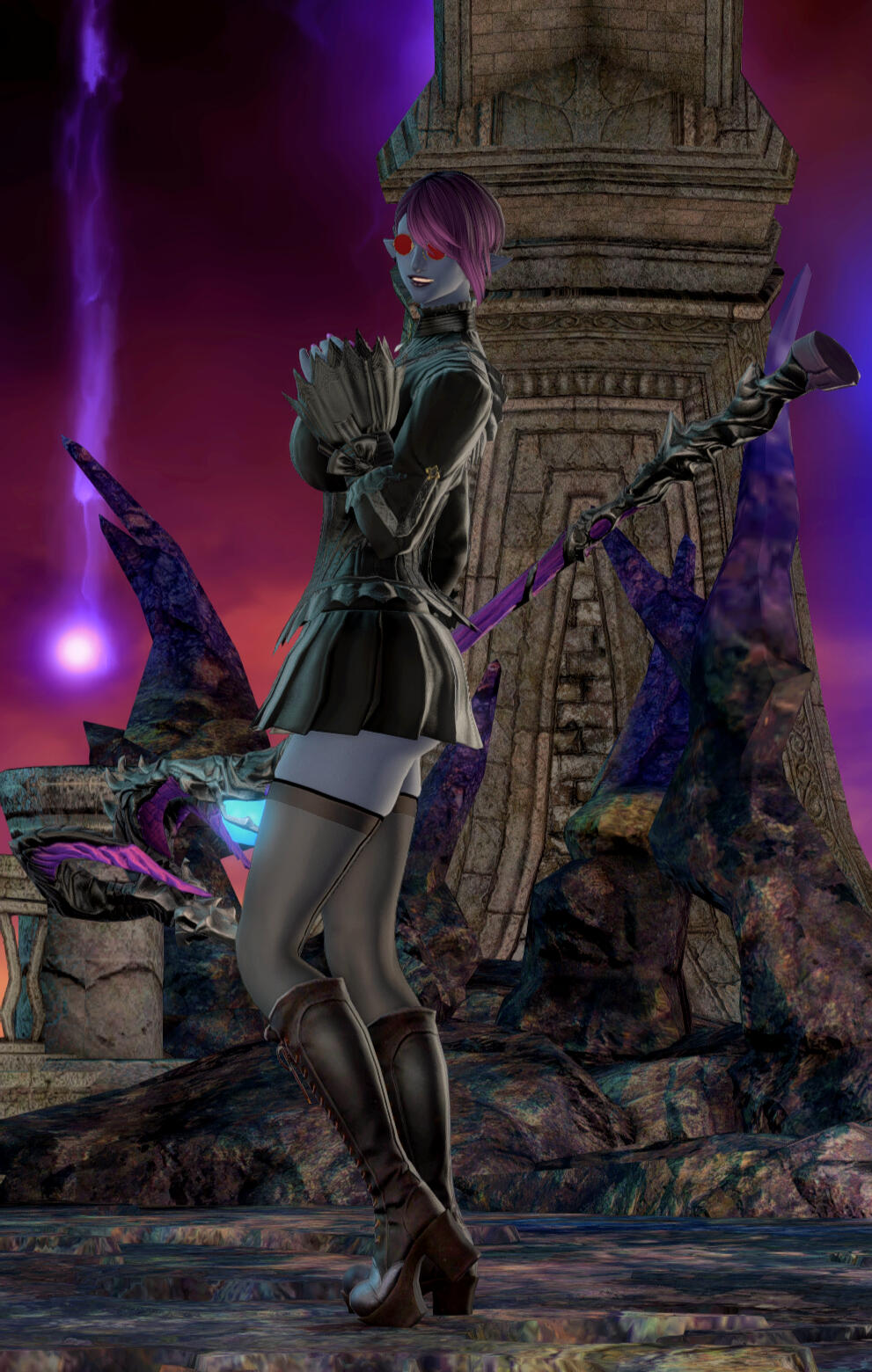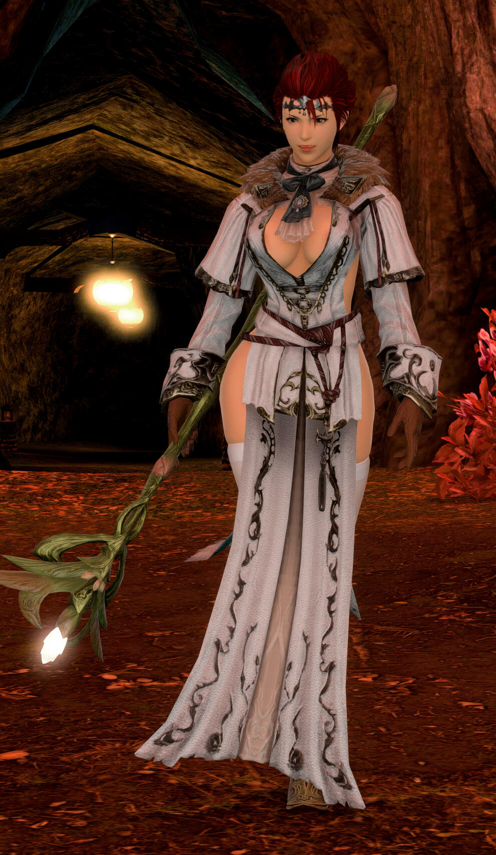 DomaA Veena Viera who once knew nothing of war and suffering, Valentyne had a very idealistic childhood amongst the forests and mountains of Skatay Range. She often longed to explore those boundaries, often hanging off the hands and hips of her sisters and mother when traders from Dalmasca and other neighboring areas to swap for the tribe’s kills. This curiosity led to her when she was old enough to leave with one of these parties to head into the heartland of man.She spent years as a hunter, learning from the hunting guilds and their ilk, discarding her bow for the more deadly firearms that were slowly being adopted as influences from their neighbors of Ilsabard and Doma. As she grew, so did her reputation as statuesque beauty and skilled opponent. She feared no beast, nor anyone else who would consider trifling with her. With this came dreams, and with the dreams, her ability to understand the world around her improved. She needed no study to understand the foreign traders, nor did she lose her kinds gift of speaking with the Green as many who left the woods did.Much like many other things, this romantic dream came to an end. Garlmald came with its army and weapons, and those who did not die in battle were treated as a little more than a beast tribe. Those Viera who had left their forest home were captured, and if not taken as a slave or play toy, sold to the highest bidder. It was here that Valentyne found herself, barely a teenager by her people’s standards, being traded to the brothels of Doma.Here, she was seen as little more than an exotic animal. She was pampered, spoiled by clients who wanted a taste of the race who rumors only spoke of. A gilded cage though was still very much a cage, and she chafed at it. She wanted nothing more to taste the wilds again, to be free and hunt. The chance would come though at the hands of chance. A Doman client had managed to claw his way through the ranks of their oppressors, now using his new found rank and power to take everything he wanted. He purchased Valentyne for a King's ransom, having her shipped to a mansion he had ‘acquired’ in the power struggle.Much like before he lavished Valentyne with gifts, playing at her being his ‘wife’. Now though without the eyes and ears of the brothel owners to stay his hand, he heaped whatever abuse that trickled down on to her. Fear of reprisal drove her to bow to his every wish, even as the desire for freedom grew. When his moods were fair, she entertained him as best she could with both body and the stories of her time as a hunter.He took to these stories the most, liking the idea of this trophy he not only show off in his home but also amongst the nobility who had come to hunt yanxian tigers. He soon began to outfit her with gear, selling her as a guide for those hunts. Valentyne was grateful for these brief outings, often lingering after the job was completed. It was here she caught the eye of a Garlean native officer, who took to calling on her for his visits to Doma. Much like suitors before he heaped gifts on her away from the eyes of her master, arming her with the best guns money could buy and a tiger cub he had captured to amuse her.This would end though, as her master found out about the officer, and in his rage threatened the cub that was Valentyne’s only source of comfort. In her blind fury, she shot her master, leaving him for dead. Gather what she could, she fled, following some unknown instinct to the west and Ala Mhigo. Here she hid amongst the refugees fleeing the Garleans until she made her way to Ul’dah. She began playing both her trades, leading syndicate members into the Black Shroud to hunt and entertaining them once the day was done back in their homes.It was here, that she survived the Calamity, and it was here where she would gain contact with the Scions of the Seventh Dawn through their man in the city. Through him, she would join with others who had the same gift and journey to face down an evil that threatened more than just Eorzea.